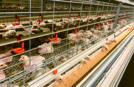 Sistem kandang broiler otomatis baris tunggal ini menampilkan struktur tiga tingkat rakitan penuh yang kokoh. Dirancang untuk operasi skala besar yang sepenuhnya otomatis, kandang ini mengintegrasikan fungsi minum, pembuangan kotoran, dan dilengkapi dengan sistem kontrol lingkungan cerdas untuk pemantauan serta penyesuaian suhu, kelembaban, dan ventilasi dari jarak jauh. Dengan desain aerodinamis yang optimal dan palung pakan yang ditinggikan, sistem ini secara efektif meningkatkan efisiensi ventilasi dan mengurangi pemborosan pakan secara signifikan.